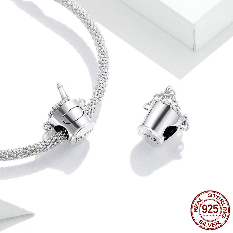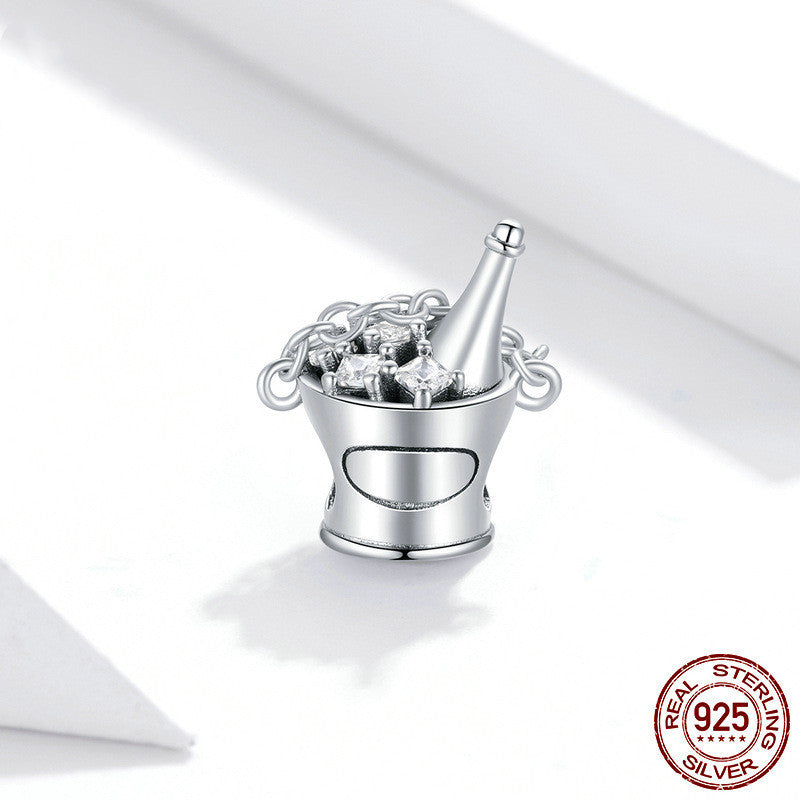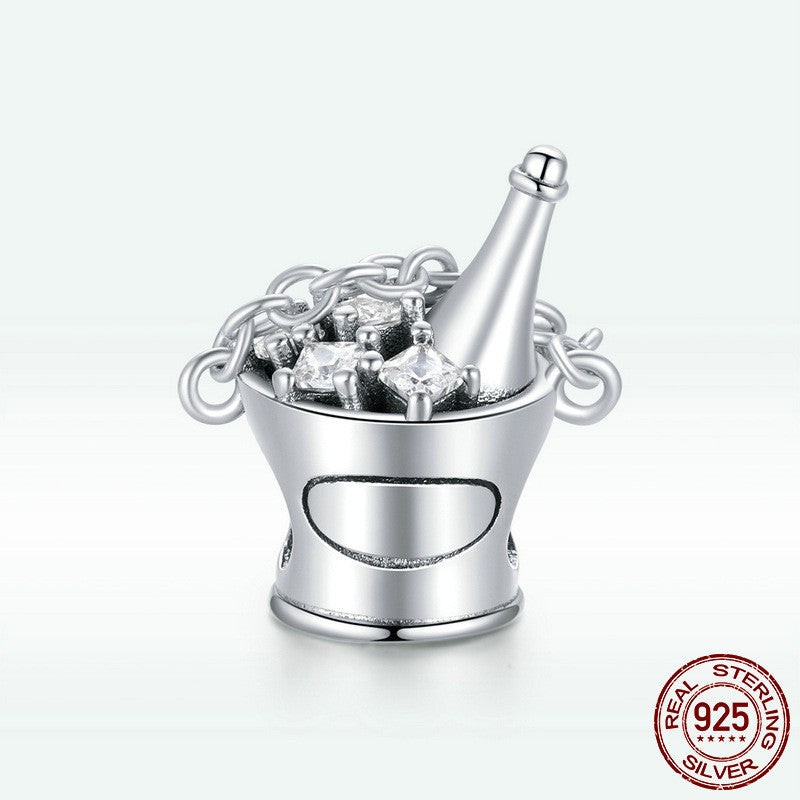 Aphrodite original happy party champagne barrel beaded sterling silver charm bracelet simple silver beads